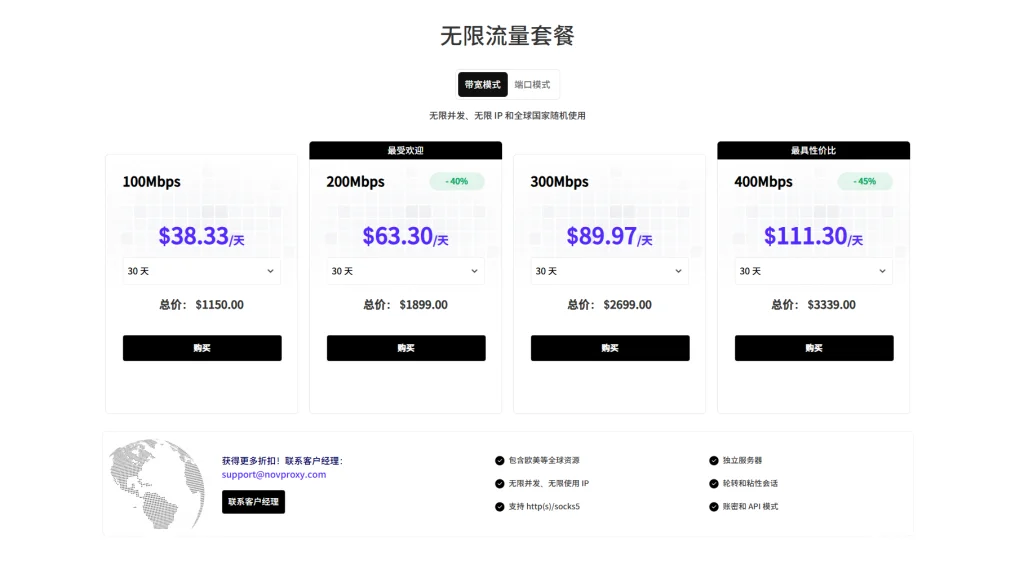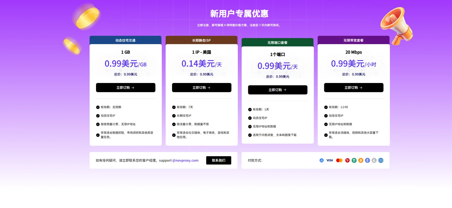 4.高性价比:与竞争产品相比,NovProxy在价格和资源分配方面具有一定的优势。