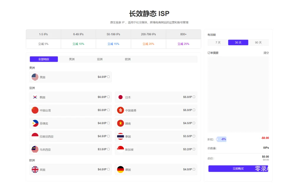 | IP数量范围 | 折扣率 |