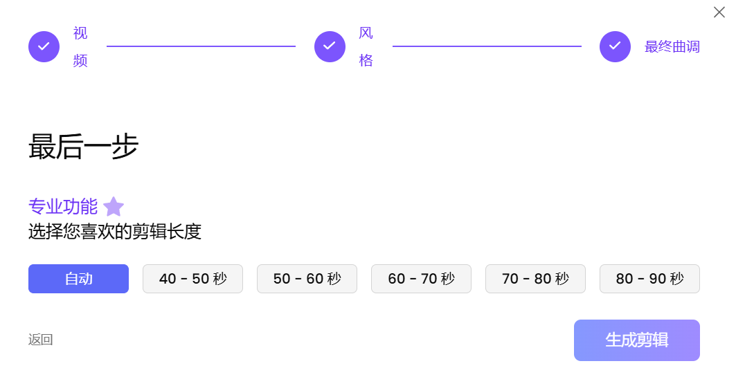 3. 等待视频生成(系统会生成几个短视频片段供你选择)。