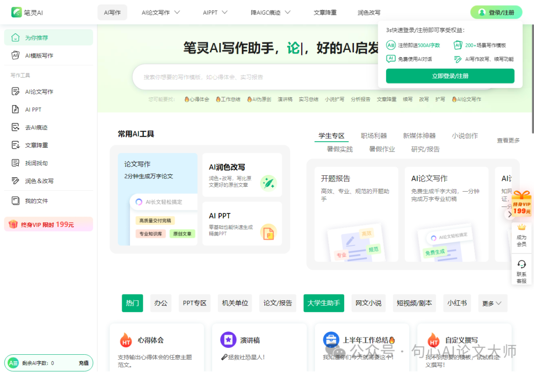 •灵感素材与资源:包括PPT展板等资源,在写作过程中给用户提供灵感和素材。