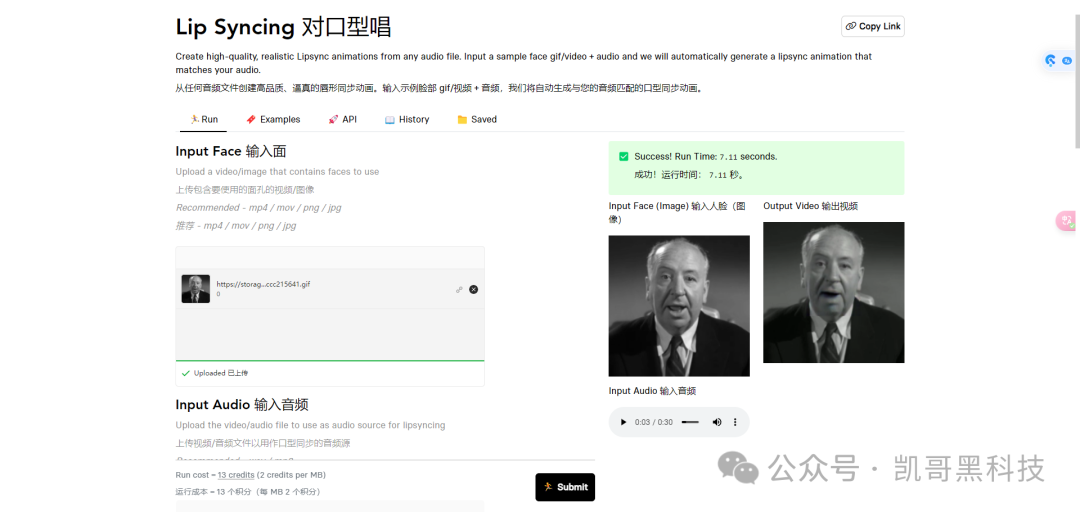 Gooey 也提供了免费的口型模拟工具,上传图像或视频文件,添加需要播报的语音即可完成语音合成和唇形匹配。