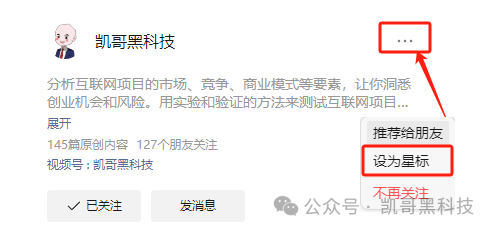 不想错过优质资源和科技分享,请点左上角蓝字凯哥黑科技,然后按下面步骤,设置星标★ 就可以优先推送了,谢谢大家的支持。