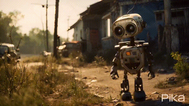 对比Runway的Gen-2,Pika 1.0在让人物动起来时的一致性非常稳定。Pika 1.0非常擅长动漫风格的动物,可生成电影级效果的短视频,堪称动漫界的「宫崎骏」。看看这些不同场景中的老鹰就知道了。还有这种漫威风格的小人模型,让他们动起来真的像是专业团队制作的定格动画。还有形单影只的白天鹅,在波光粼粼的湖中嬉戏,再游到岸边,好像在找回家的路。就连机器人总动员动画风格的科幻风短片,呈现的也是淋漓尽致信手拈来。如下这个例子是,Pika 1.0实现了“丛林中的兔子士兵”这一提示词的电影级生成效果,并给出了提示。① Cinematic, extreme close-up of a bunny soldier in a jungle, 3D rendering② Cinematic, back-view long shot of a bunny soldier exploring a giant carrot in the jungle, 3D rendering疯狂动物城狮子王熊出没多部作品的混剪穿越动画也能实现。还有网友制作了最新预热的哥斯拉大战金刚2AI电影预告片,就连名字都想好了——「哥斯拉大战金刚:新帝国」。还有一位国外的视频达人利用Pika 1.0制作真人变身影片。