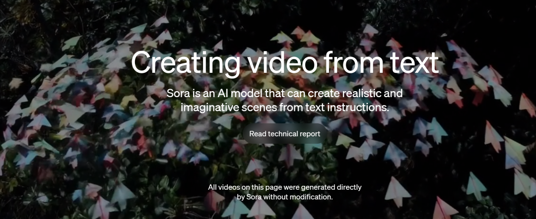 在Open AI Sora首页,首先映入眼帘的是五颜六色的纸飞机在自由地飞翔,象征人类无限的创造潜力,越创造,越自由,Sora的名字应该包含上述两层含义。