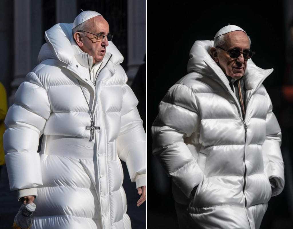 罗马教皇前几周因穿着一件时尚、蓬松的白色夹克而风靡一时。唯一的问题是:那张图完全是假的。Buzzfeed News 称之为“第一个真正的大规模级别的 AI 虚假信息案例”,他们还跟踪找到了制作这张图的人,来自芝加哥的 Pablo Xavier。Pablo Xavier 透露,当他产生了幻觉之后,在一个你无法想象的时刻,他决定给教皇穿上一件巴黎世家 (Balenciaga)的 羽绒服,他觉得那会很有趣。