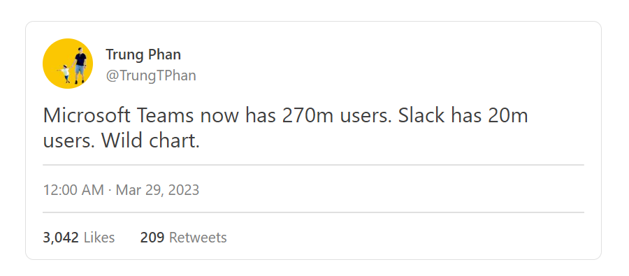 在技术和商业领域,获胜的往往是分发。看看 Microsoft Teams 与 Slack 之争就知道了;微软通过将 Teams 集成到 Office 365 套件来抵消了 Slack 的发展势头: