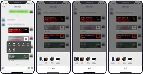 同时,用户在微信朋友圈和聊天对话中看到的音乐分享也可以通过长按后选择“打开”,即可通过小微设备播放。